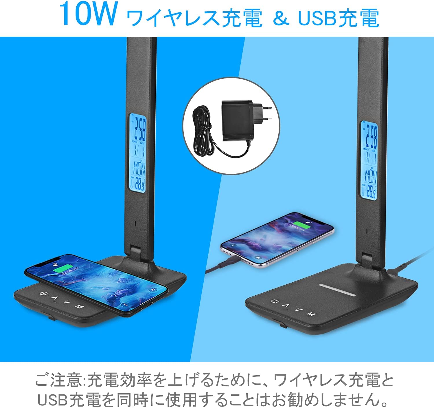 - 【10Wスマホ充電機能】このデスクランプは二つの充電機能を備え、スマホやUSB扇風機やその他のUSBデバイスに充電可能です。出力電力は5V2Aで、スマホに高速充電できます。充電効率を上げるために、同時に使用することはお勧めしません。