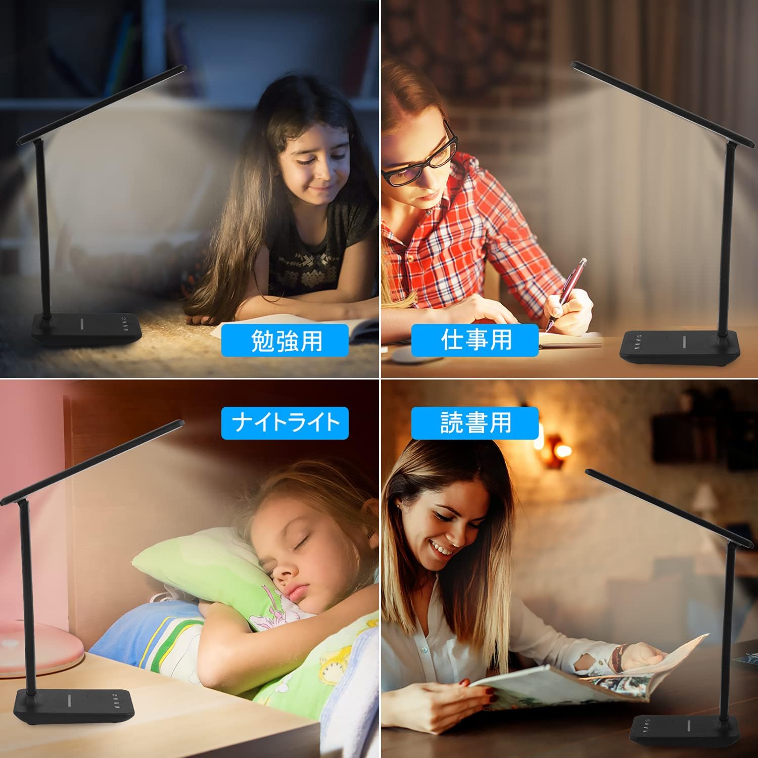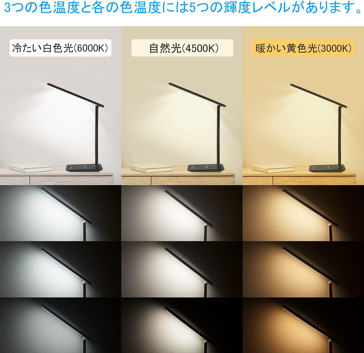 - 【5段階調光&3段階調色】照明色温度は3種類(冷たい白色光6000K、自然光4500K、暖かい黄色光3000K)を選択出来、照度は5段階を選択出来ます。環境によって集中したい時やリラックスしたい時、指でデスクライトのタッチパネルを軽く触れると、お好みで色温度と明るさを調整できます。 ナイトライトとしても勉強机用読書灯、PC作業用仕事灯としても使用可能です。設置記憶機能により、再起動する場合モード設置が不要、超便利です。