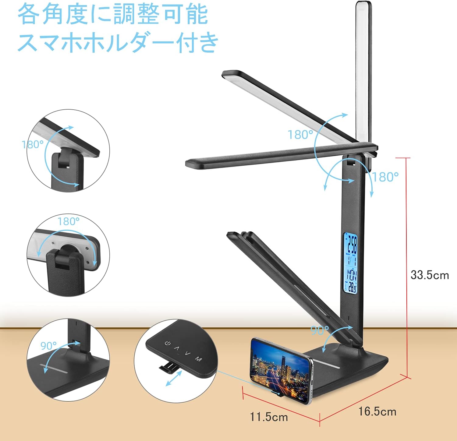 - 【高級感があるデザイン】電気スタンドは本革調のシボ柄が入るABS素材で作られ、高級感があるし、タッチ感もいいです。高品質なLEDなので、暑くならないし、理論上の使用寿命は20,000時間です。耐久性抜群です。ランプソケットは180°、ランプアームは90°範囲に回転と折畳可能、必要に応じて全方向に照明を提供し、収納も便利です。