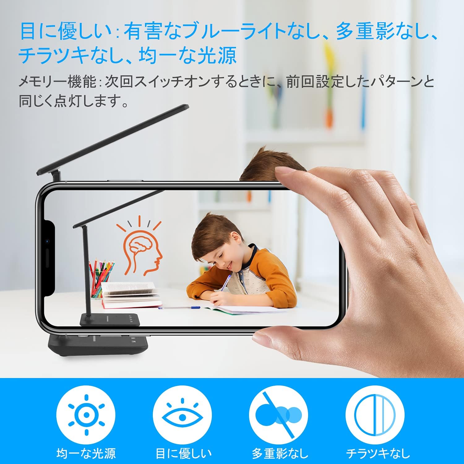- 【目に優しいデスクライト】デスクライトは高性能LEDコンポーネントを採用し、有害なブルーライトなし、多重影なし、ストロボなし、均一な光が広がります。演色指数はRa>80になり、演色性が高いほど物事本来のカラーを復元できます。長時間使用した目の疲れを防ぎます。読書、勉強、長時間のデスクワークに最適です。